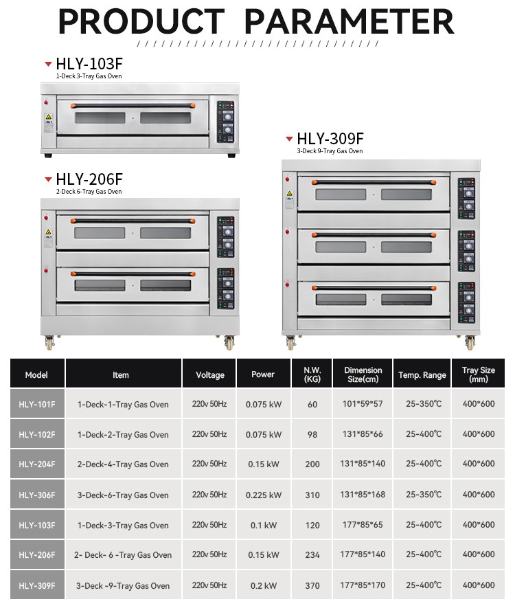 25-400℃The gas oven is suitable for baking bread, cake, pizza, biscuits and other pastry foods, and can also bake meat, vegetables and other ingredients.
