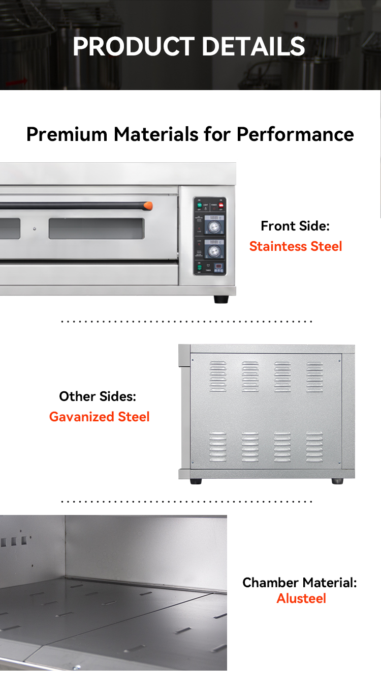 This gas oven features a 25-400℃ temperature range,stainless steel gas burner, anddurable alusteel chamber for high-performance baking applications.