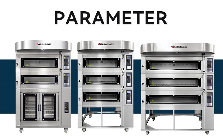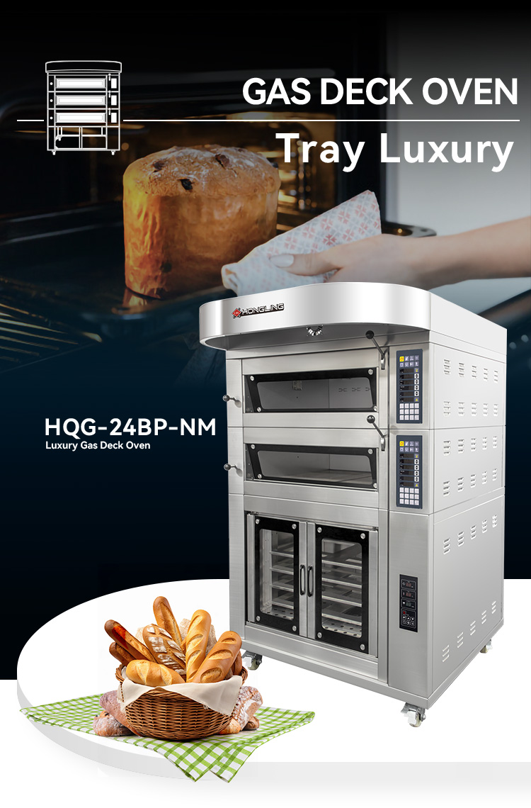 This gas oven features a stainless steel gas heater, 1.2t SS201 front panel, 2.0t bottom plate, touch screen controller, and advanced heating system for efficient and precise baking.