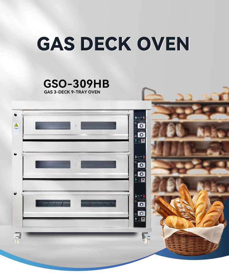 3 Deck 9 Trays Gas Deck Oven with 220mm Chamber for Bakery