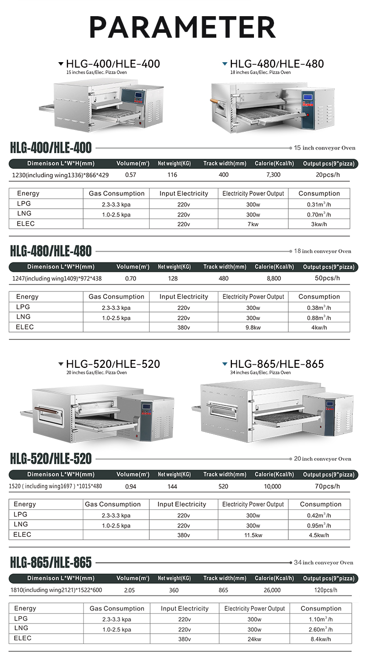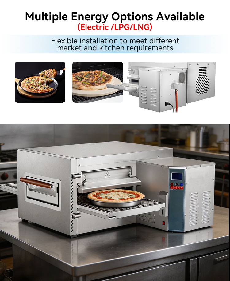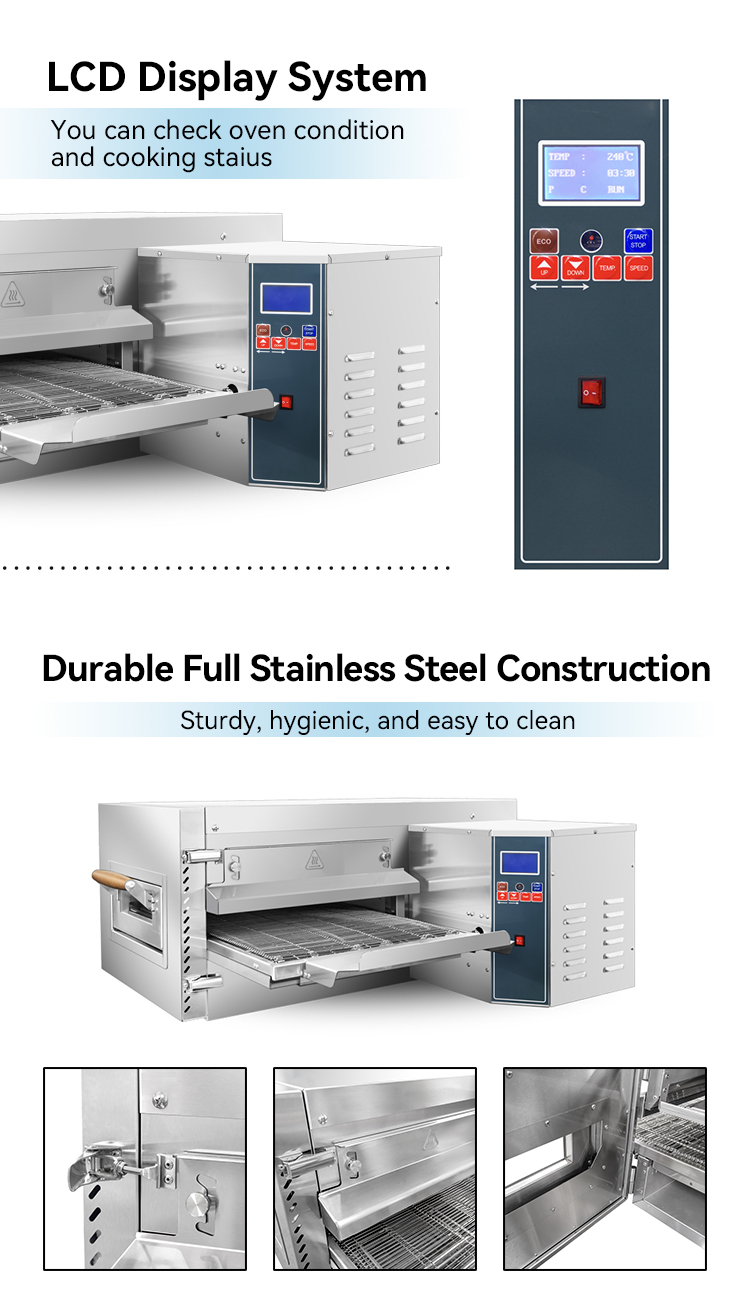The conveyor pizza oven is fast, consistent, efficient, automated and space-saving, making it an ideal choice for catering establishments such as fast food restaurants, pizza chains and large restaurants.
