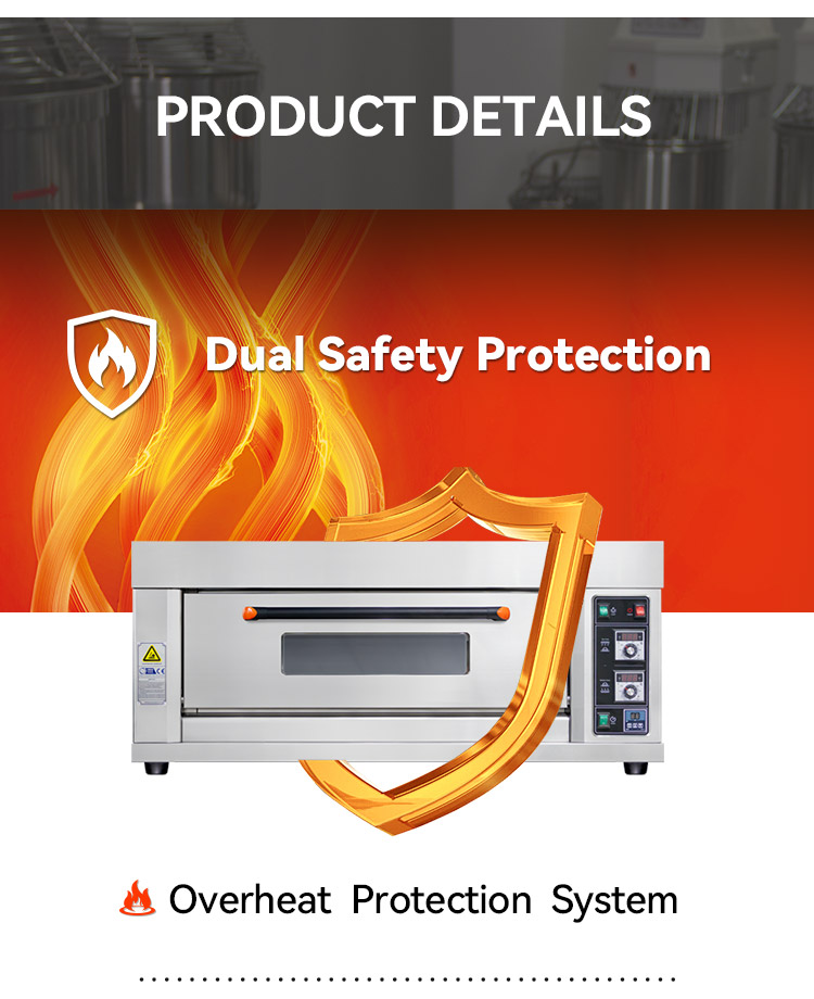This electric oven features overheat protection, timer control, the alusteel chamber, stainless steel front side, and galvanized sheet oven body for baking.